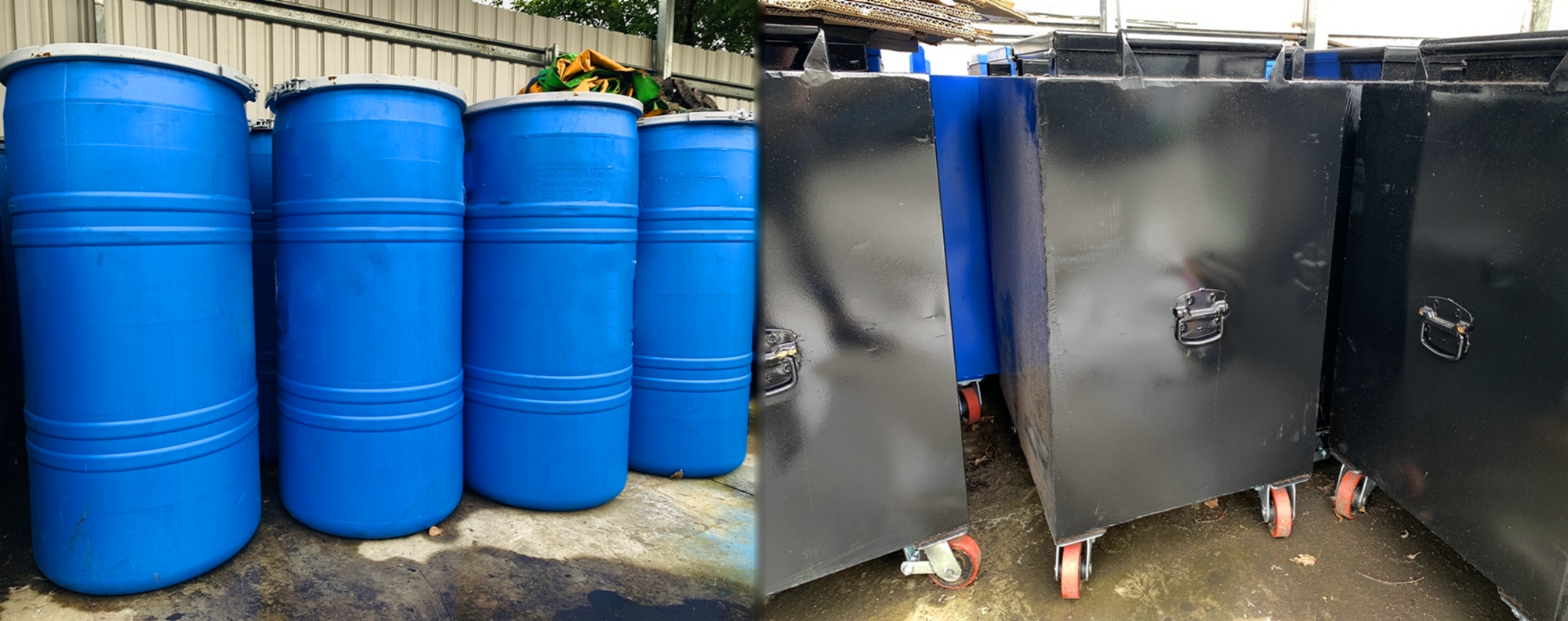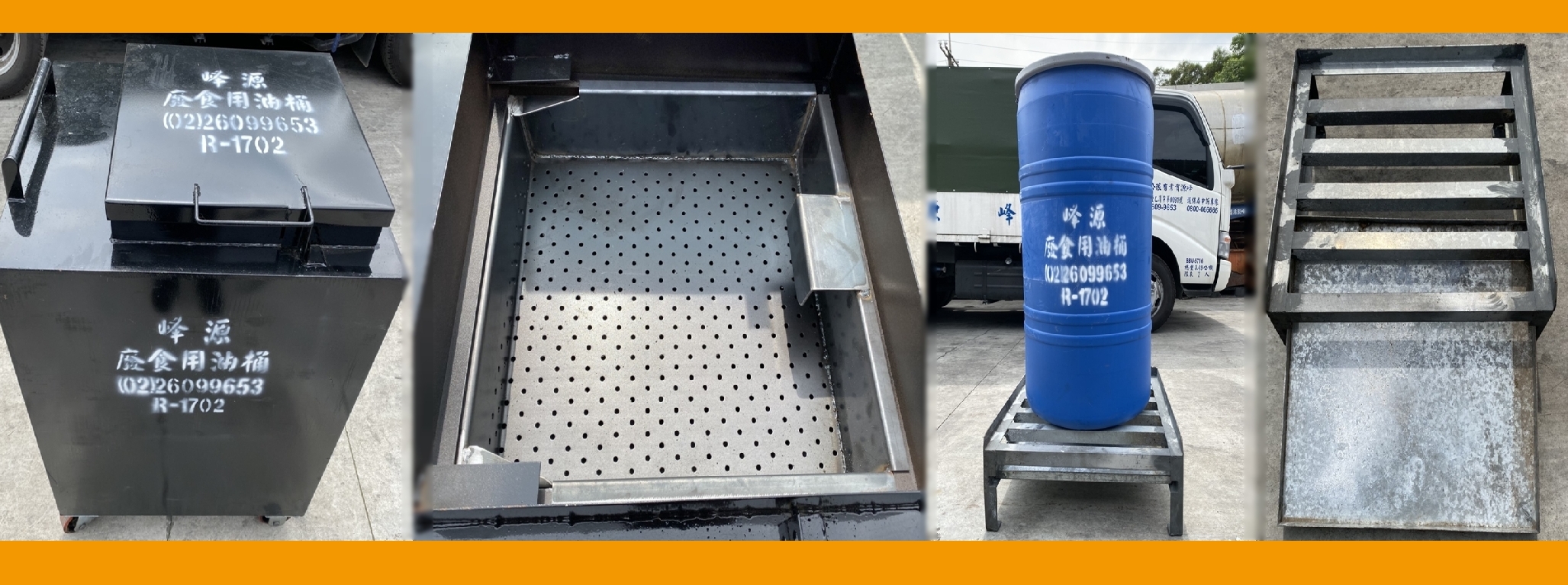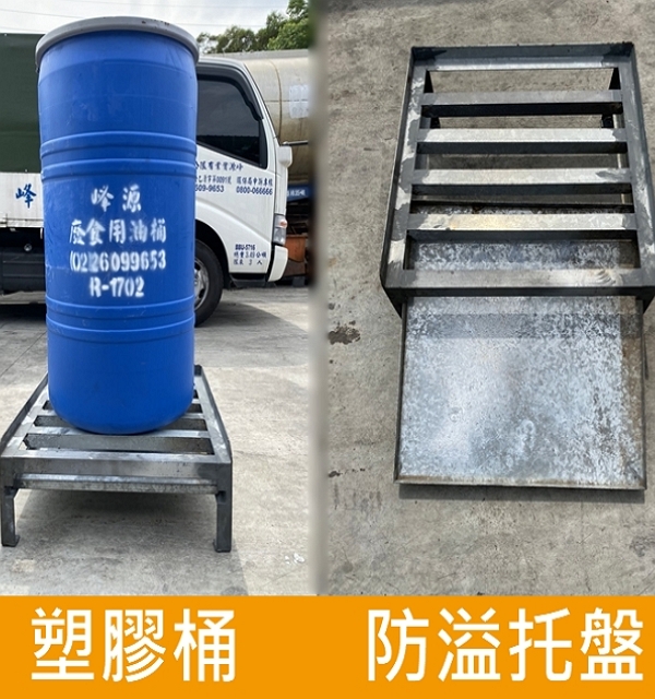 備有多款儲油桶可依照現場裝況調整放置,提供鐵架放置廢油與地面隔絕、方便清潔